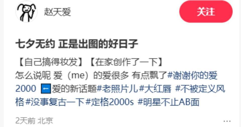 七夕这一天官宣恋情的明星不多,但暗戳戳秀恩爱的明星却不少,白客的绯闻女友赵天爱发了一组红衣写真,表现很惊艳。