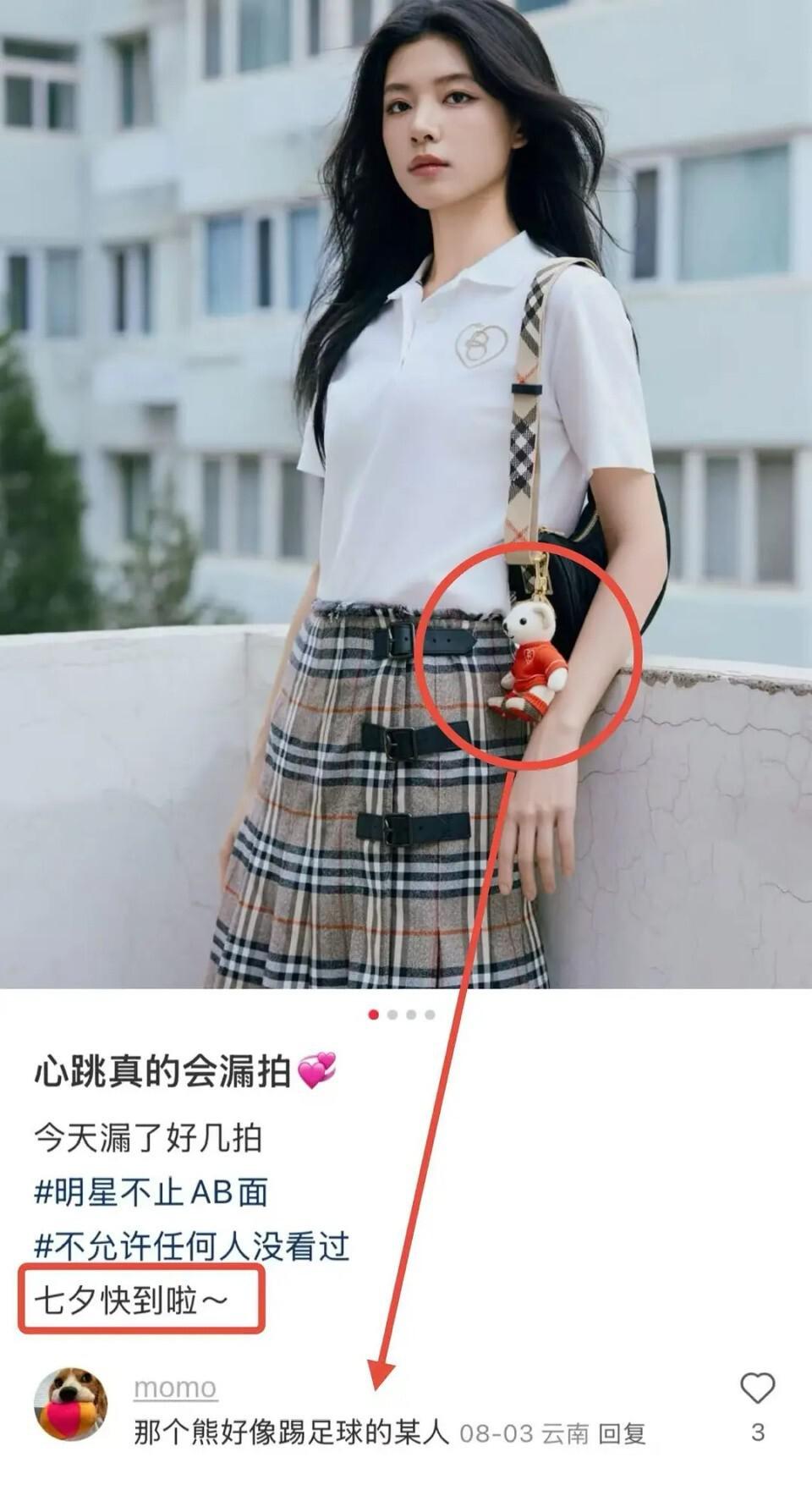 她的文案和图片中的细节却引起了很多网友的质疑,文案写着“七夕无约”,摆明了这个七夕是她一个人过的,但是在拍照背景中却出现了一件挂着的球衣,恰恰属于白客支持的球队。
